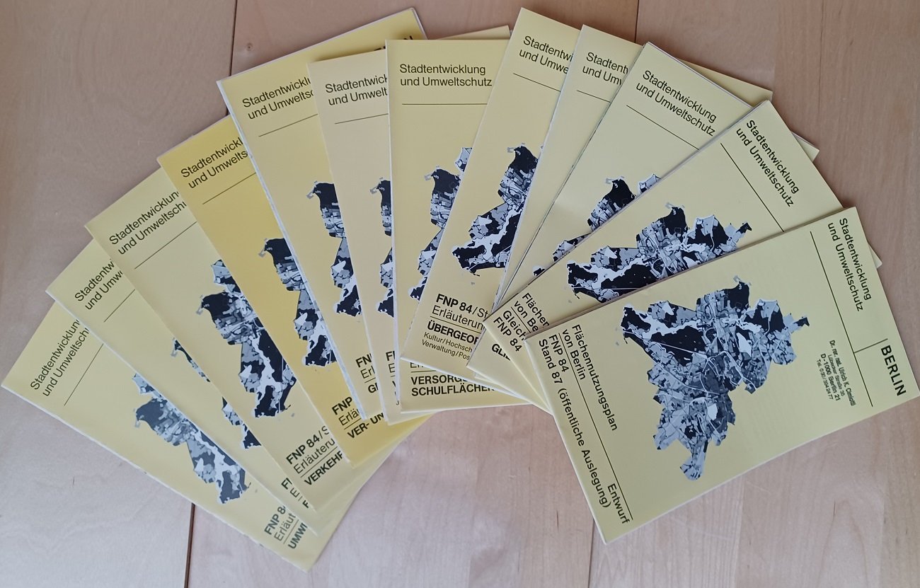 Flächennutzungsplan 1984 in insgesamt zwölf einzelnen Plänen. Enthalten sind: Flächennutzungsplan von Berlin, FNP 84 Entwurf, Stand 1987 (öffentliche Auslegung) / Flächennutzungsplan von Berlin, Gleichwertige Planungsalternativen, Entwurf / 1. FNP 84, Stand 86 Erläuterungsplan. Raum Berlin und Räumliche Gliederung Berlin (West) / 2. FNP 84, Stand 3/87 Erläuterungsplan. Wohnen / 3.1 FNP 84, Stand 3/87 Erläuterungsplan. Übergeordneter Gemeinbedarf / 3.2 FNP 84, Stand 3/87 Erläuterungsplan. Versorgung mit Sport- und Schulflächen / 3.3 FNP 84, Stand 3/87 Erläuterungsplan. Versorgung mit Gemeinbedarf / 4. FNP 84, Stand 3/87 Erläuterungsplan. Gewerbe / 5. FNP 84, Stand 3/87 Erläuterungsplan. Ver- und Entsorgung / 6. FNP 84, Stand 3/87 Erläuterungsplan. Verkehr / 7. FNP 84, Stand 3/87 Erläuterungsplan. Freiflächen / 8. FNP 84, Stand 3/87 Erläuterungsplan. Umweltschutz. Flächennutzungsplan von 1984 in zwölf separaten Teilplänen! ################## LIEBE KUNDEN, WIR MACHEN UNSERE JÄHRLICHE FRÜHLINGSAKTION MIT 30% RABATT AUF DEN GESAMTEN BESTAND. DIE ERMÄSSIGUNG GILT AB SOFORT, DER RABATT WIRD NACH IHRER BESTELLUNG VON DEN PREISEN ABGEZOGEN UND SIE ERHALTEN DEN ENDBETRAG VON UNS. ÜBER IHR INTERESSE AN UNSEREN SELTENEN STÜCKEN WÜRDEN WIR UNS WIE JEDES JAHR SEHR FREUEN ###################