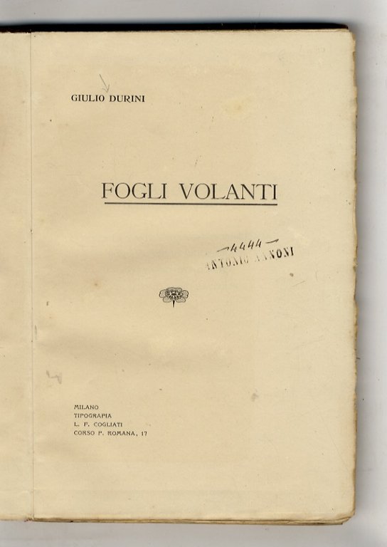 Milano, tip. L.F. Cogliati, (1902?), in-8, brossura editoriale pergamenacea (un poco polverosa e con qualche fioritura), pp. 221, (3).
