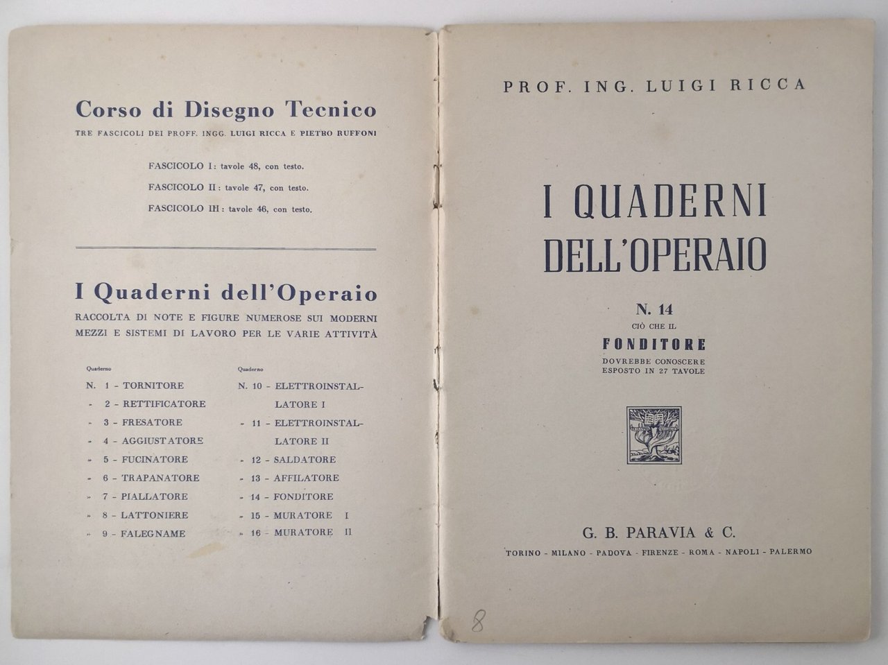 FONDITORE I QUADERNI DELL'OPERAIO di Luigi Ricca 1949 Paravia Libro Manuale