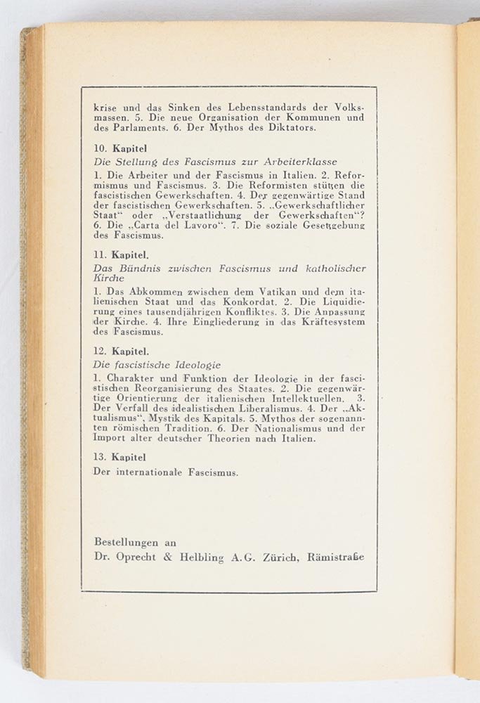 Edizione: edizione originale con réclame di «der fascismus» nelle pagine finali.