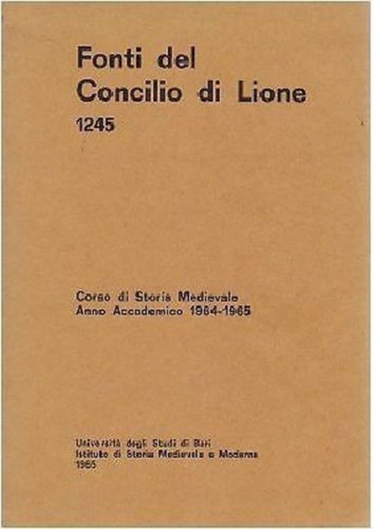 FONTI DEL CONCILIO DI LIONE 1245 Università degli Studi Bari 1965 libro storia