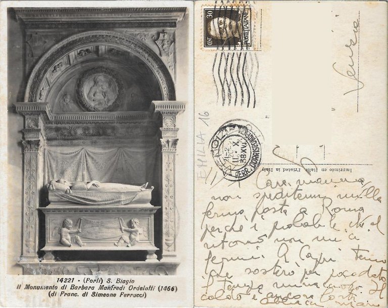 Forlì. S. Biagio. Monumento di Barbara Manfredi Ordelaffi. Viaggiata 1938