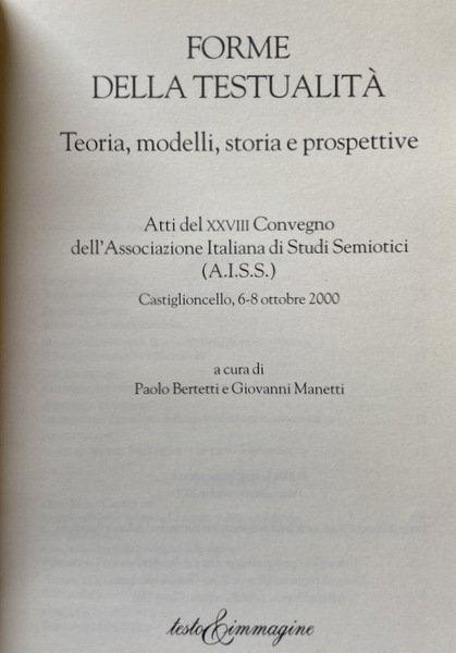 Titolo: Forme della testualità. Teoria, modelli, storia e prospettive. Atti del 28° Convegno dell'associazione italiana di studi semiotici (A.I.S.S.), (Castiglioncello 2000)