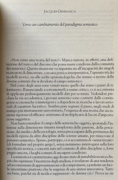 Saggi di: Jacques Geninasca, François Rastier, Massimo Bonfantini, Susan Petrilli, Augusto Ponzio, Eric Landowski, Francesco Marsciani, Felice Cimatti, Gian Paolo Caprettini, Stefano Gensini, Arianna De Luca, Maria Giovanna Onorati, Patrizia Violi, Andrea Bernardelli, Roberto Pellerey, Francesca Mirizzi, Paolo Fabbri, Lucia Corrain, Romana Rutelli, Nicola Dusi, Francesca De Ruggieri, Cinzia Bianchi, Gianni Sibilla, Paolo Peverini, Nicoletta Vittadini, Carlos A. Scolari, Daniele Barbieri, Alessandro Perissinotto, Isabella Pezzini, Veruska Sabucco, Gianfranco Marrone, Ruggero Eugeni, Cristina Demaria, Cecilia Gallotti, Vanni Codeluppi.