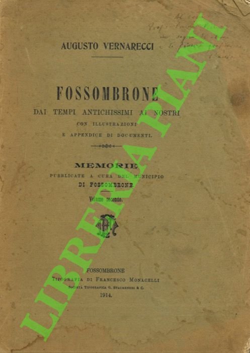 Fossombrone dai tempi antichissimi ai nostri. Con illustrazioni e appendice di documenti. Volume secondo.