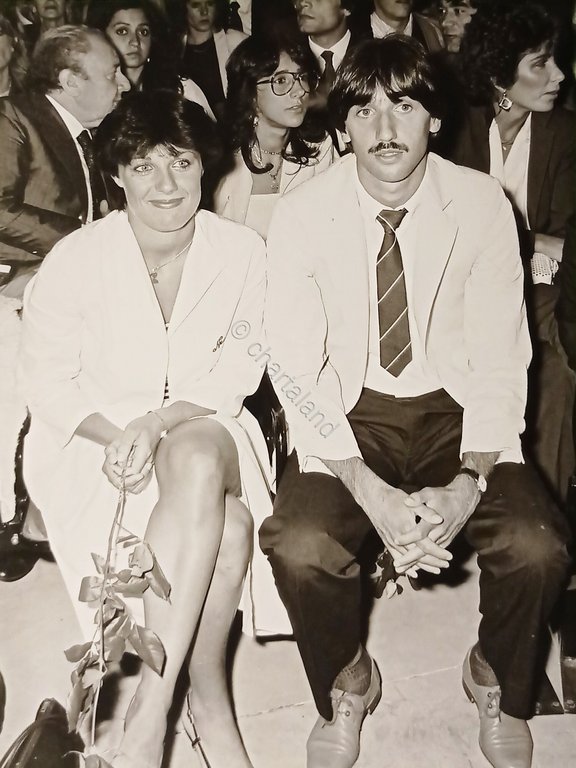 Foto Agenzia Sport Calcio - Calciatore francese Bernard Genghini con la moglie - Anni '80 Dimensioni 18 x 24 cm ca. Condizioni molto buone. Bernard Genghini è un ex allenatore di calcio ed ex calciatore francese, di ruolo centrocampista.