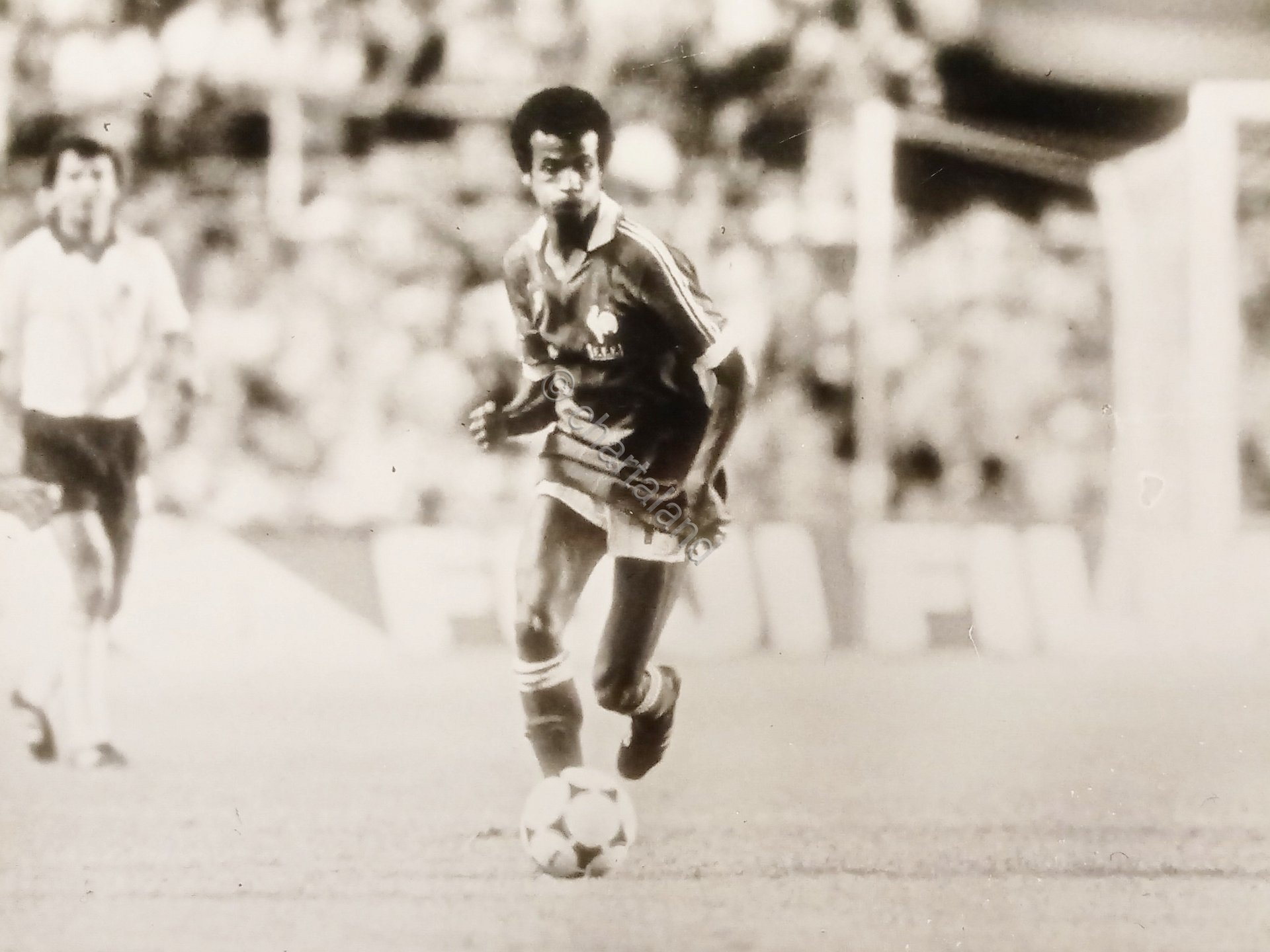 Foto Agenzia - Sport Calcio - Calciatore francese Jean Tigana - Anni '80 Dimensioni 24 x 18 cm ca. Condizioni molto buone. Jean Amadou Tigana è un allenatore di calcio ed ex calciatore maliano naturalizzato francese.