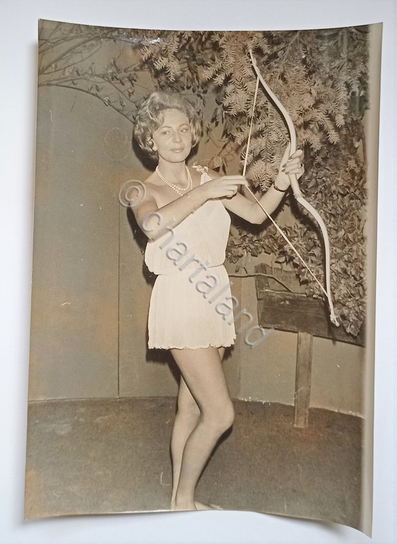 Foto dell'Agenzia Farabola Milano - Miss Diana 1964 in Onore ai Cacciatore - Parigi, Settembre 1964 Beatrice Ruggeri " Miss Diana 1964"Dimensioni: 20.5 x 15 cm ca. Condizioni molto buone.