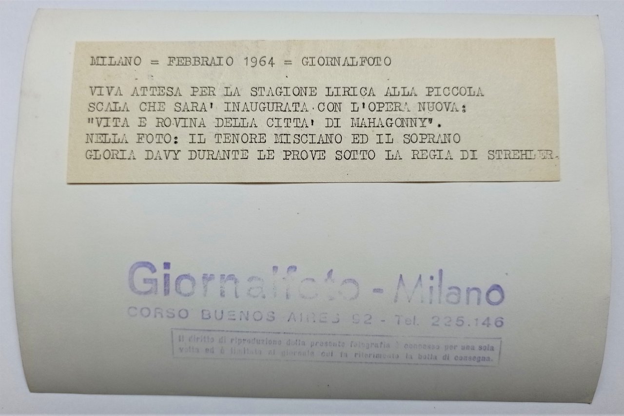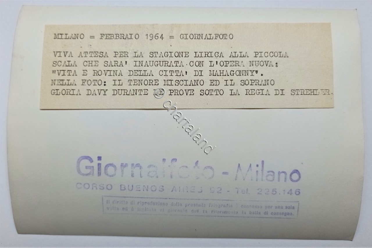 Foto dell'Agenzia Giornalfoto Milano - Tenore Alvinio Misciano e Soprano Gloria Davy - 1964 Alvinio Misciano (Narni, 29 agosto 1915 – Milano, 10 gennaio 1997) è stato un tenore italiano. Gloria Davy era una soprano svizzera di nascita americana che ha avuto una carriera internazionale attiva in opere e concerti dagli anni '50 agli anni '80. Dimensioni 18 x 13 cm ca. Condizioni molto buone.