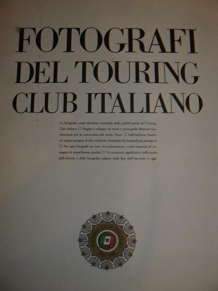 In -4° carré ( 34, 5 x 30), pp. 219, oltre 200 fotografie di alta qualità che testimoniano l'evoluzione della fotografia nel secolo di vita del Touring, tela editoriale con sovraccop.