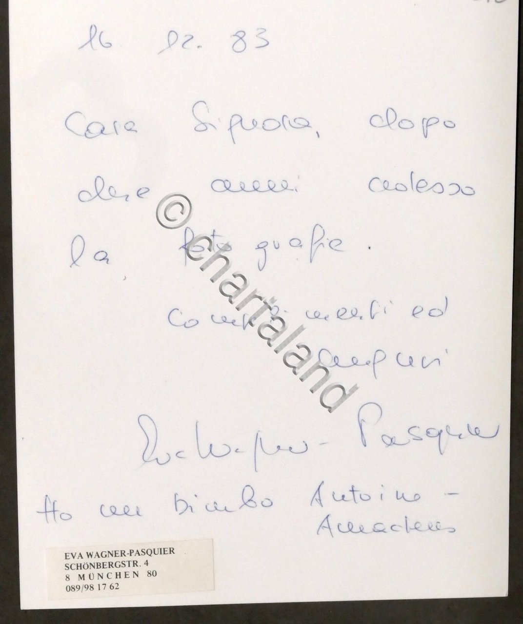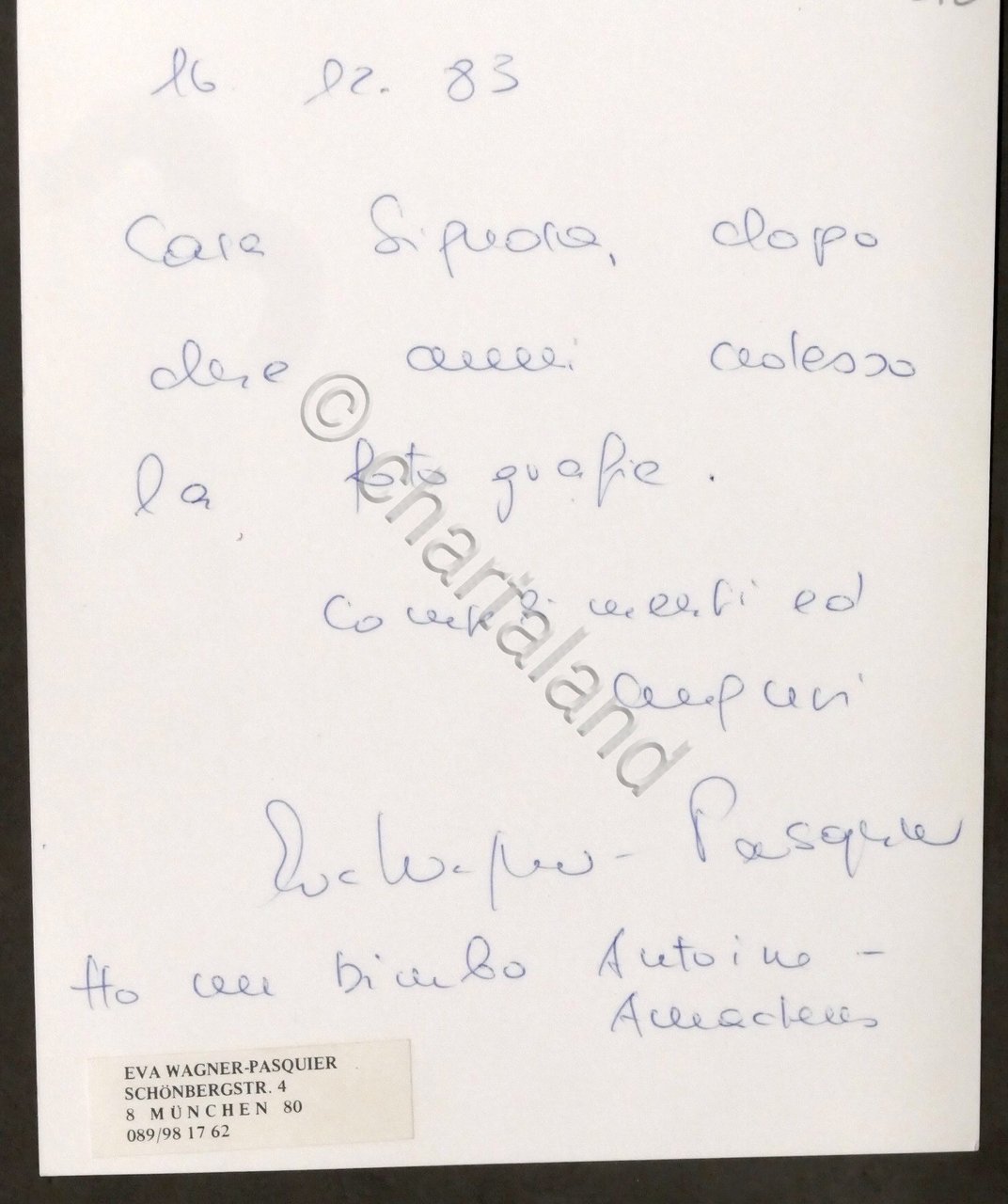 Fotografia con autografo dellla direttrice d'opera Eva Wagner-Pasquier - 1983