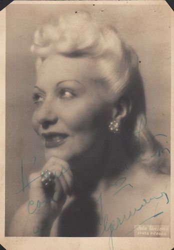 Ritratto fotografico in b/n di cm 17 x 12 su carta pesante. In basso dedica autografa in inchiostro verde. Piccolo cartiglio stampato nell'angolo in basso a sinistra col nome dello studio fotografico (Foto Unione). Wanda Osiris - nome d'arte di Anna Menzio - (Roma, 3 giugno 1905 – Milano, 11 novembre 1994), è stata un'attrice, cantante e soubrette italiana del teatro di rivista nel periodo anni trenta - anni cinquanta.