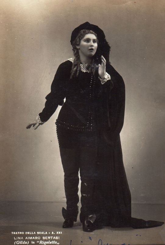 Foto in costume con firma autografa sul davanti e sul retro bella dedica con ripetuta la firma autografa -(Lina Aimaro (Aymaro) Bertasi. Torino, 6 febbraio 1914 – Desenzano del Garda, 14 gennaio 2000, è stata un soprano italiana).