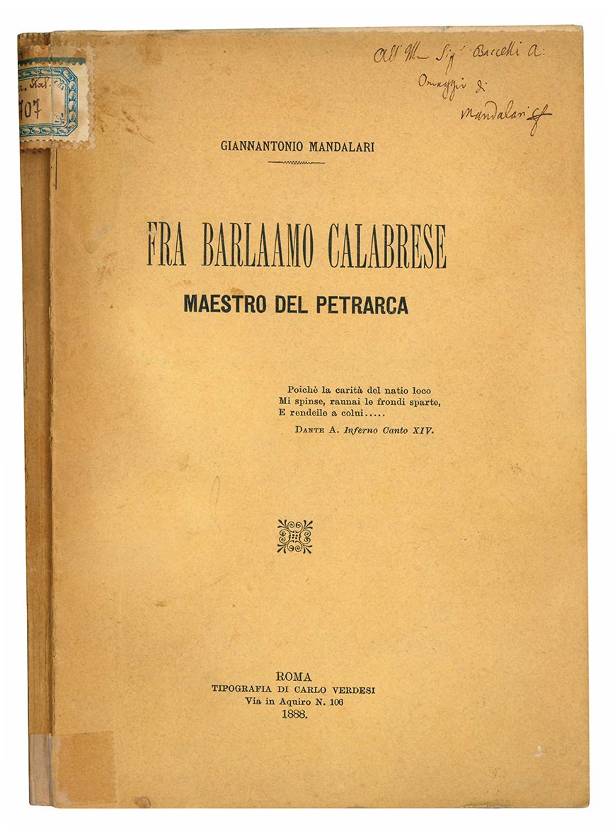 In 8vo (mm 209x140); pp. [2], 126, [2]. L'ultimo capitolo è dedicato alla bibliografia col censimento dei manoscritti greci nelle biblioteche europee. Frontespizio un po' brunito. Brossura editoriale originale con minime mancanze e piccoli restauri al dorso. Tassello cartaceo riportante la collocazione al margine superiore del dorso. Invio autogravo dell'autore al margine superiore della copertina anteriore.
