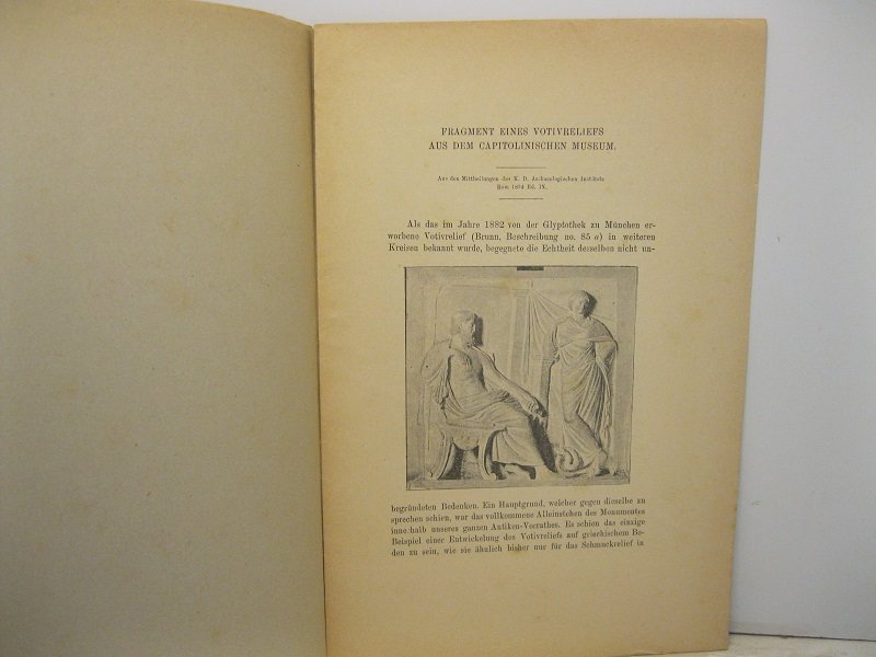 Fragment eines votivreliefs aus dem Capitolineschen Museum. Aus des Mitteilungen des K.D. archaologischen Instituts