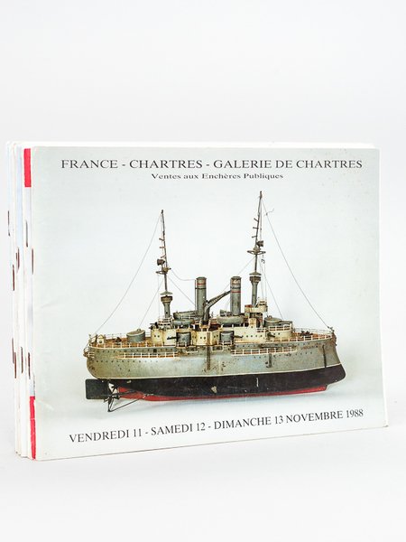 France - Chartres - Galerie de Chartes. Ventes aux Enchères Publiques. [ Lot de 8 catalogues : Jouets anciens - Modèles Réduits - Chemin de fer - Voitures - Bateaux ] 11-12-13 novembre 1988 : Chemins de fer, automobiles 1/43e, Jouets anciens ;12 et 12 novembre 1989 : Jouets, avions, chemin de fer ; 29 et 30 avril 1989 : Jouets anciens, chemin de fer ; 28, 29 et 30 avril 1990 : Jouets anciens et chemin de fer ; 17 novembre 1990 : Jouets anciens, chemin de fer ; 9 et 10 mars 1991 : Automobiles, Chemin de fer ; 20 et 21 avril 1991 : Jouets anciens, chemin de fer ; 9, 10, 11 novembre 1991