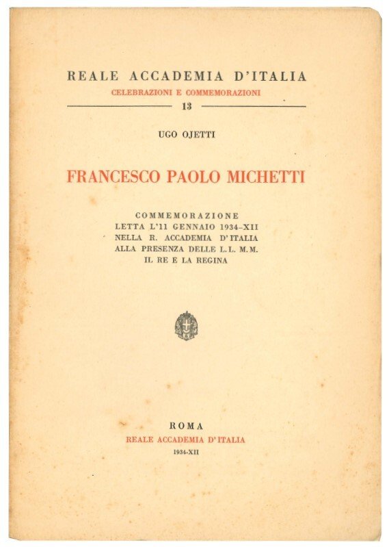 Francesco Paolo Michetti : commemorazione letta l'11 gennaio 1934 nella R. Accademia d'Italia alla presenza delle L.L. M.M. il re e la regina.