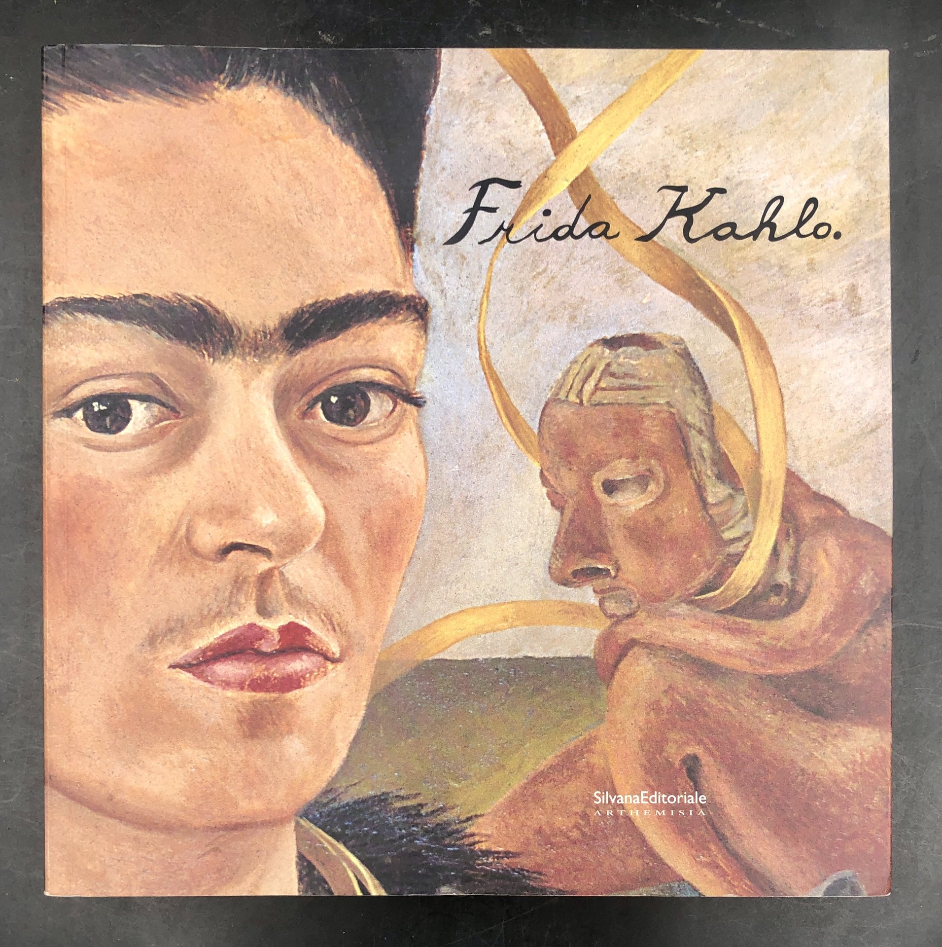 In-8° quadro (c. 24x24), pp. 336 con centinaia di FOTO e di riproduzioni a COLORI e in bianco e nero, tra cui 42 a COLORI e 7 DISEGNI; di fortissimo impatto l'evidenziazione di DETTAGLI surreali dei dipinti. Moltissimi ritratti e autoritratti dipinti o fotografici, anche riferiti alla sua vita con Diego Rivera, con Trockjl, André Breton ecc. Testo in caratteri bianchi su fondo giallo. Frida KAHLO, (Coyoacàn, Città del Messico, 1907-1954), pittrice che unì la tradizione messicna e iun personalissimo surrealismo dell'inconscio e dei simbolismi; donna libera e fautrice dell'emancipazione femminile.