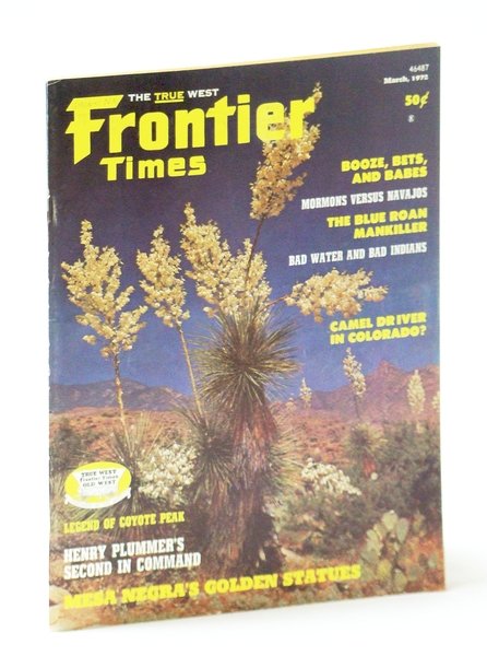 • Henry Plummer's Second in Command - a responsible member of the, Oregon Volunteers degenerates, Booze, Bets, and Babes - Gay and Gory episodes on Whiskey Row, Prescott, Arizona, Bad Water and Bad Indians - conflict between sailors and natives, on the Pacific Coast, Mesa Negra's Golden Statues, Camel Driver in Colorado? - Jacob Acabajal's gravestone is a, puzzle, The Blue Roan Mankiller - outlaw horse in Idaho, Mormons versus Navajos - Pipe Spring, The Mysterious Old Woman, Legend of Coyote Peak, Frontier Freighter Frontier Times Magazine: February - March, (Feb. - Mar.), 1972: The Blue Roan Mankiller Americana History Magazine Back, Issues