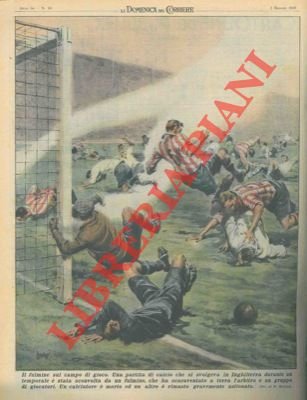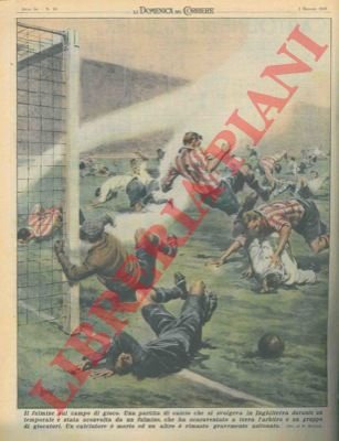 Fulmine scaraventa a terra l'arbitro e un gruppo di giocatori durante una partita di calcio.