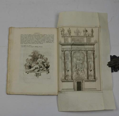 Cm. 25,5, pp. xxxvi. Antiporta figurata e ripiegata (Crivellari inc.), eleganti vignette, capolettera e 5 tavole fuori testo, ripiegate raffiguranti gli apparati delle feste. Bella legatura coeva in carta goffrata con motivi floreali (rimontata?). Non è presenta la dedica alla magnifica città di Padova che occupa le due carte fuori registro che succedono al frontespizio. Una reintegrazione al margine interno di una carta (con perdita di alcune lettere), un appena percettibile alone in fine, peraltro esemplare genuino ed in ottimo stato di conservazione.