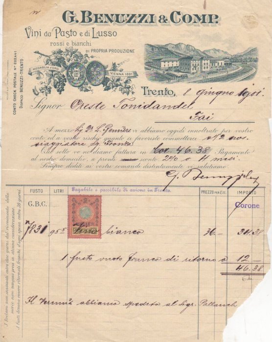 - [Fatture - Trento - Cantina G. Benuzzi & Comp.].