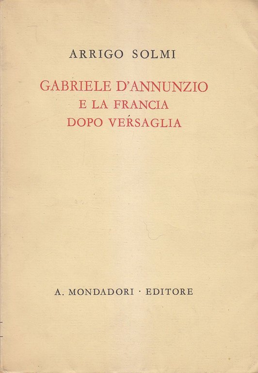 Gabriele D’Annunzio E La Francia Dopo Versaglia di Arrigo Solmi I edizione 1941