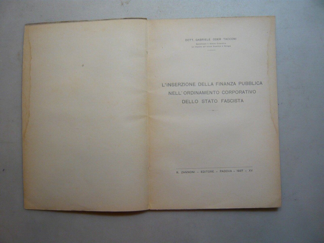 Gabriele Oder Tacconi,L’INSERZIONE DELLA FINANZA PUBBLICA...1937[stato fascista