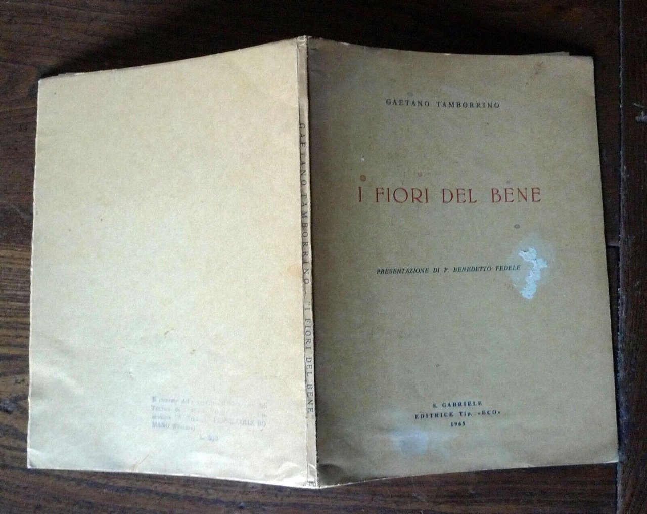Gaetano Tamborrino,I FIORI DEL BENE.Presentazione di P. Benedetto Fedele.S. Gabriele Editrice Tip. "Eco",San Gabriele dell'Addolorata (TE) 1965,brossura, 21,5x16 cm., pp.62,con un ritratto dell'Autore in bianco e nero,peso: g.200