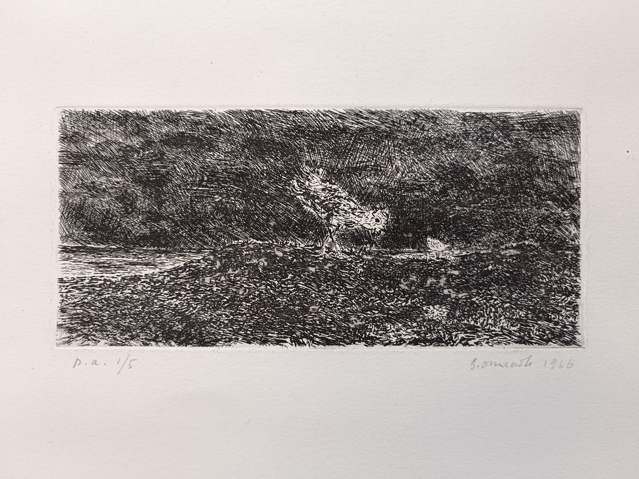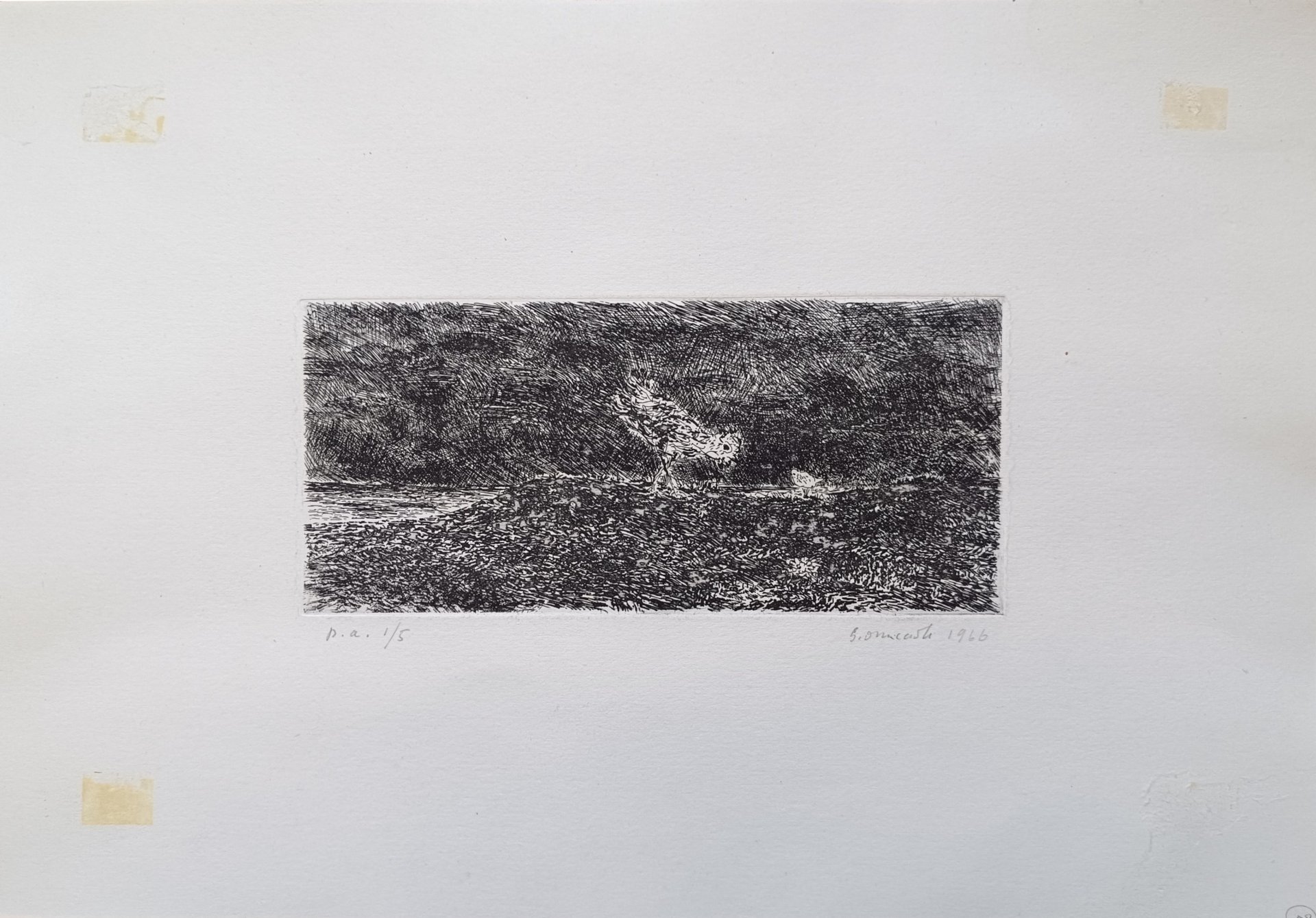 Prova d'artista in basso a destra 1/5. acquaforte inciso cm. 25 x 11,5 ; foglio cm. 47 x 33 Buono (Good) Buon es, segni di nastro adesivo e abrasione in basso a destra.