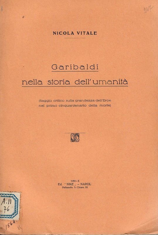 Garibaldi nella storia dell'umanità. (Saggio critico sulla grandezza dell'eroe nel primo cinquantenario della morte).