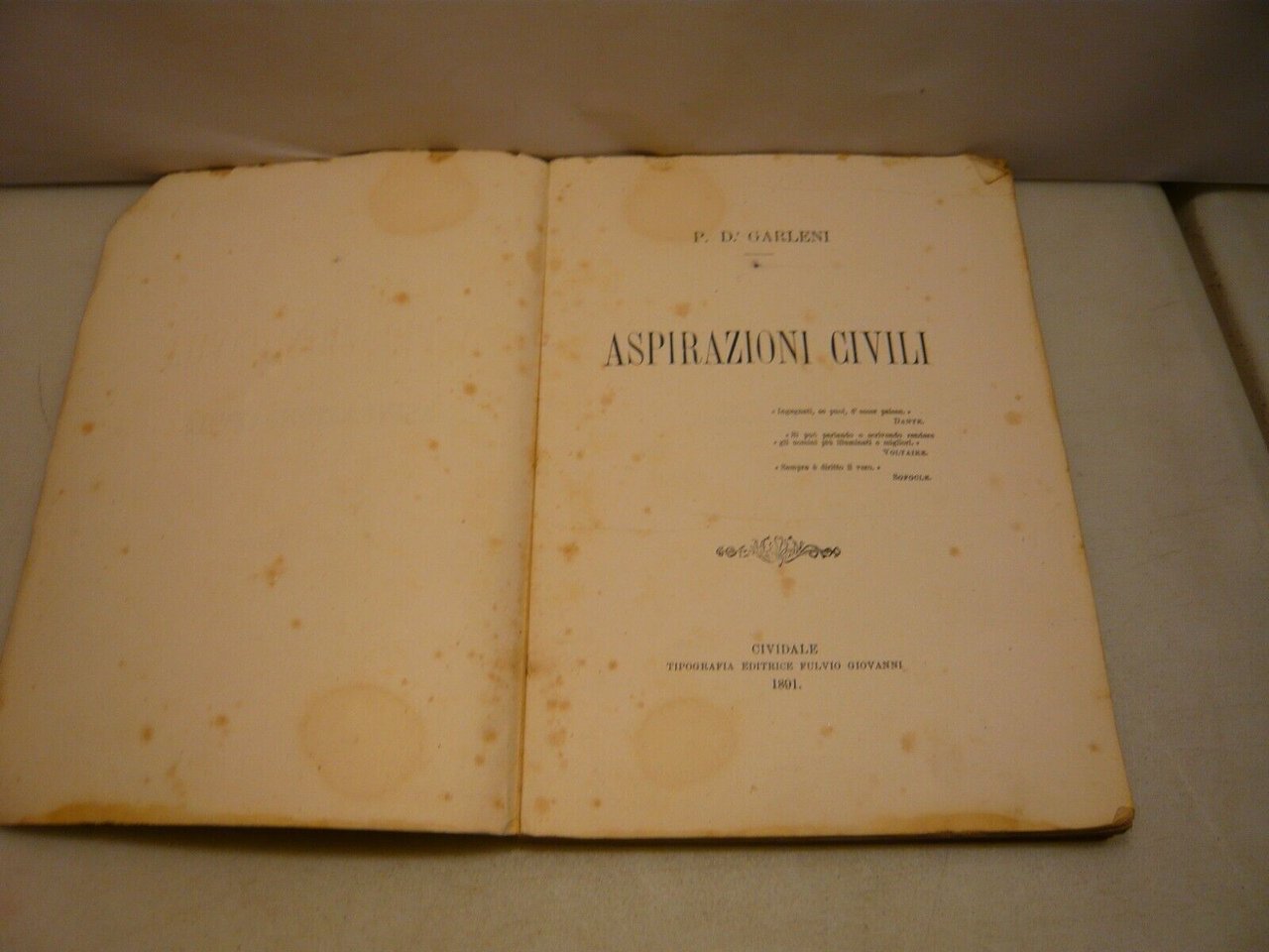 Garleni,ASPIRAZIONI CIVILI,Fulvio Giovanni, Cividale, 1891[Ugo Foscolo,
