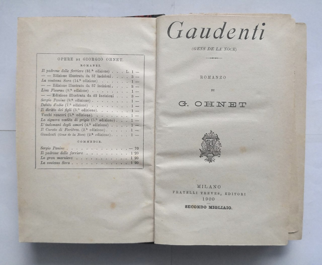 GAUDENTI gens de la noce romanzo di Giorgio Ohnet 1900 Fratelli Treves Libro
