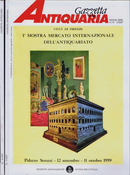Anno 2007 completo, composto dai NN. 51 e 52, rispettivamente di 80 ed 96 pagine, del periodico semestrale Gazzetta Antiquaria - Rivista dell'Associazione Antiquari d'Italia - Nuova serie, direttore: Giovanni Pratesi. Due riviste in ottimo stato, coperta illustrata in cartoncino patinato, pochi segni d'uso, cerniera stretta, tagli e pagine, in carta patinata, ottimamente conservati. Ricche di illustrazioni in b. e n. ed a colori, in testo e fuori testo. Numero Pagine 176.