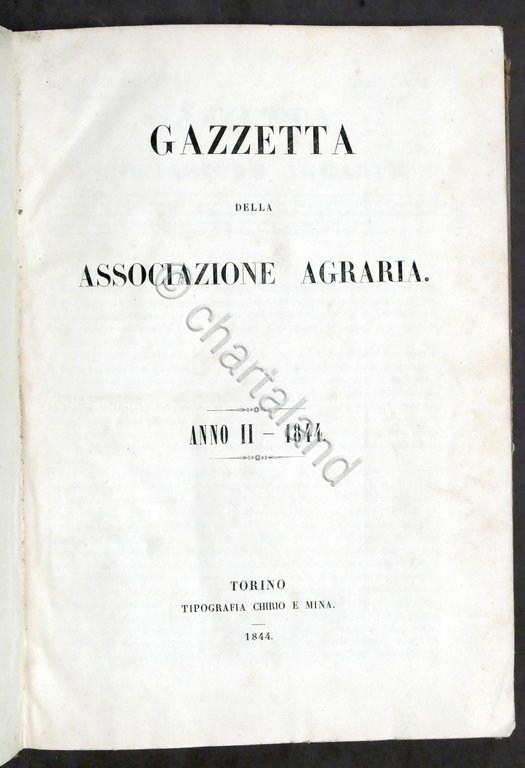 Gazzetta dell'Associazione Agraria - Anno II completo - 1844 Pag. 403 con alcune tavole ripiegate f.t. Copertina rigida - Testo in italiano Buone condizioni.