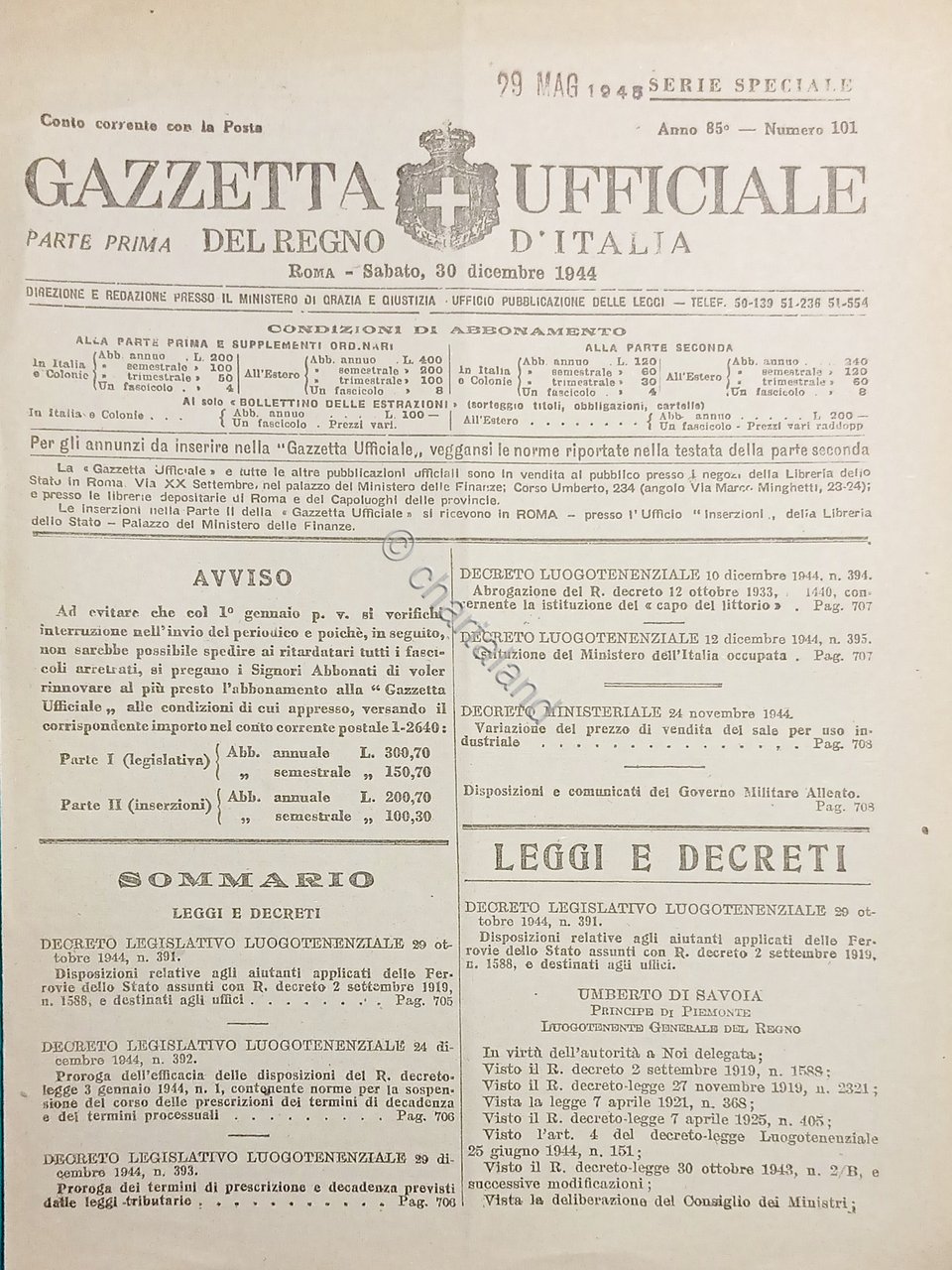 Gazzetta Ufficiale del Regno d'Italia N. 101 - 1944