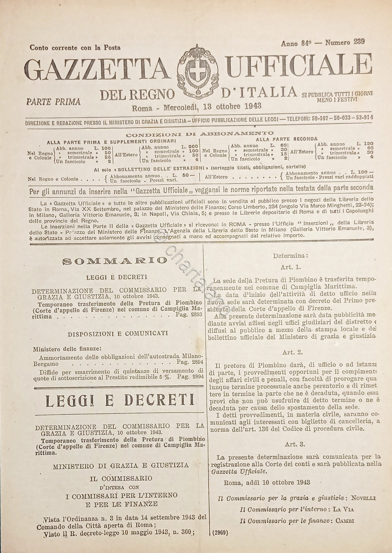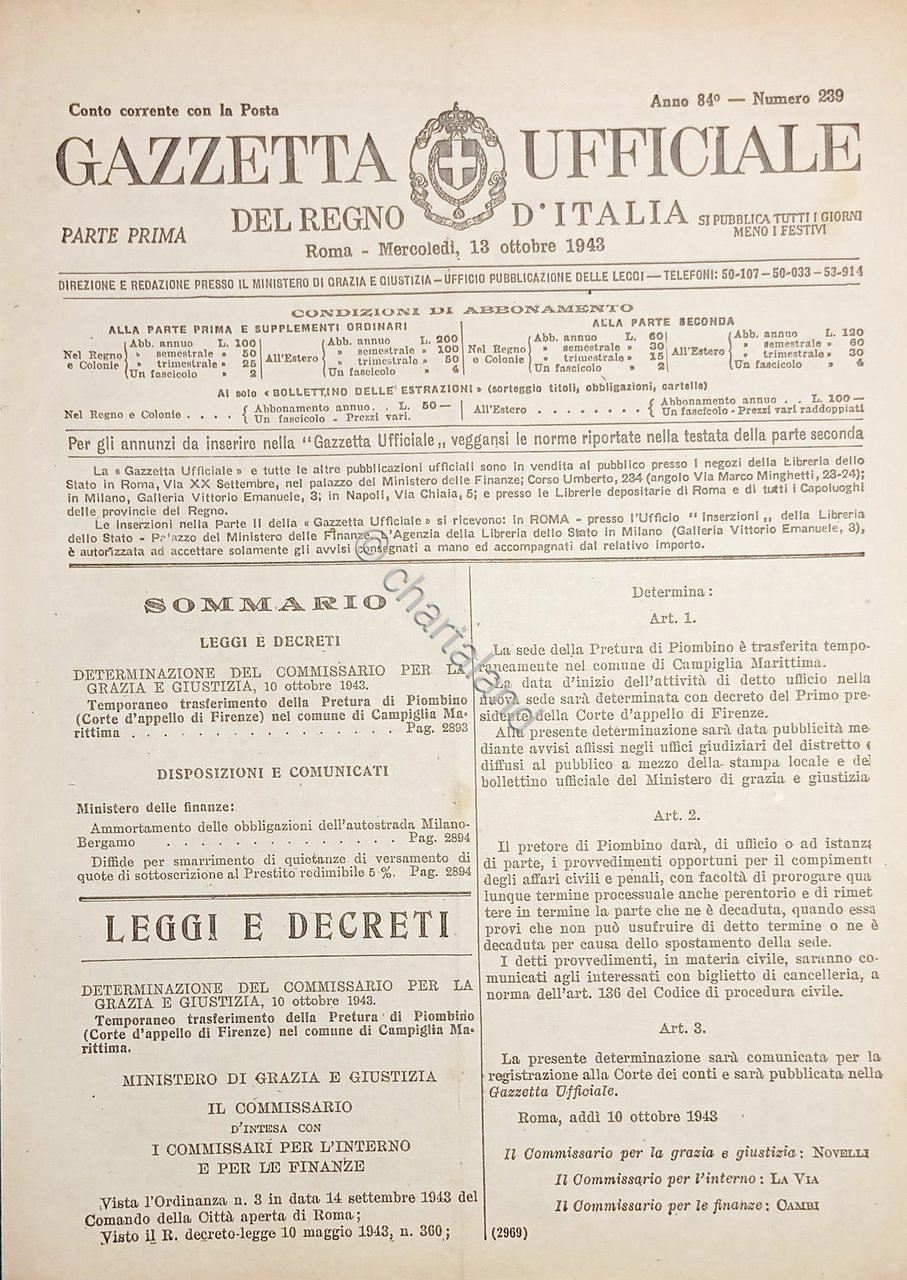 Gazzetta Ufficiale del Regno d'Italia N. 239 - 1943