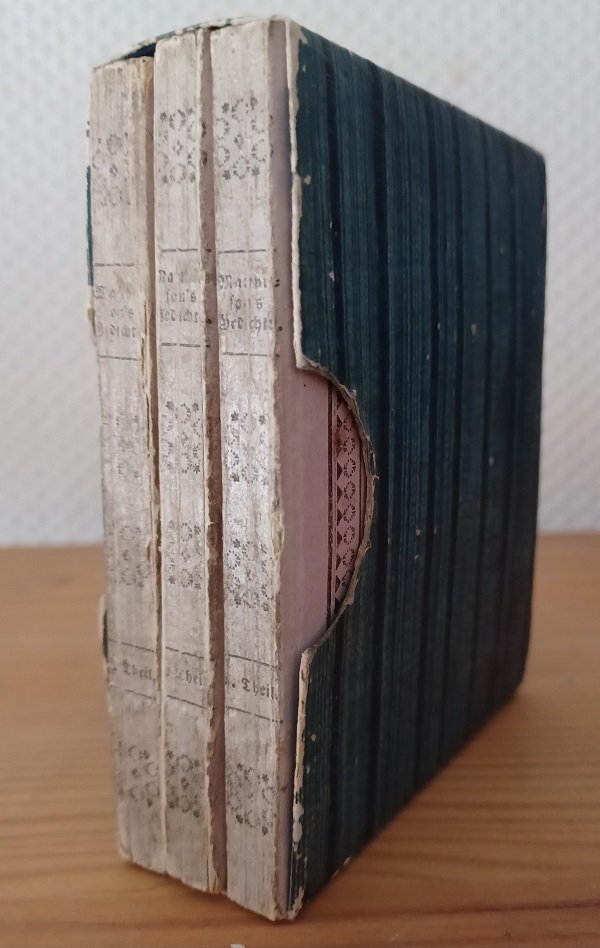 - Original hell-lila Pappbändchen mit dekorierten Rücken und Deckeln in Schuber,