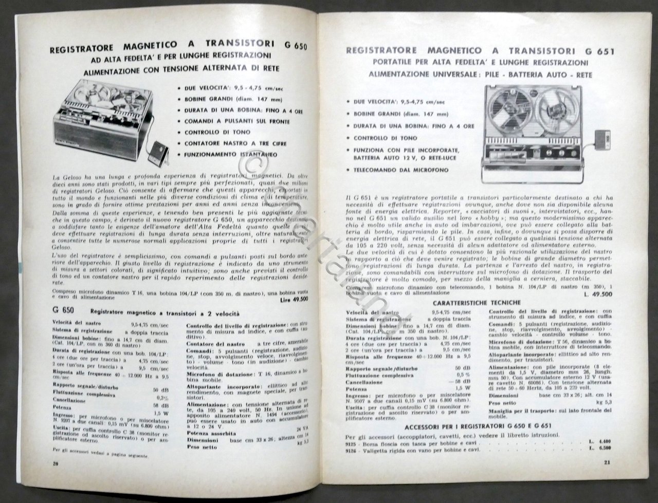 Geloso - Estratto dal catalogo generale apparecchi - Inverno 1966 - 67 Pag. 71 con numerose illustrazioni. Copertina morbida - Testo in italiano Condizioni molto buone. Copertina come da foto.