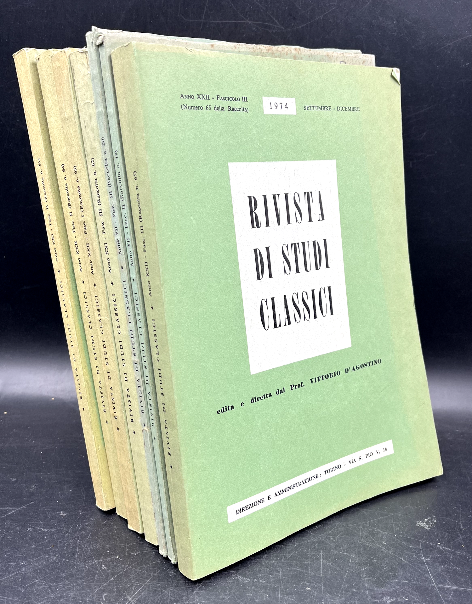 GEMME PASCOLIANE [Analisi ed esegesi degli SCRITTI LATINI di Giovanni PASCOLI, tra cui FANUM VACUNAE e altri]. 7 studi in Rivista di Studi Classici, 1959 fasc. 1 e 2; 1973 fasc. 2 e 3, 1974 fasc. 1, 2, 3.
