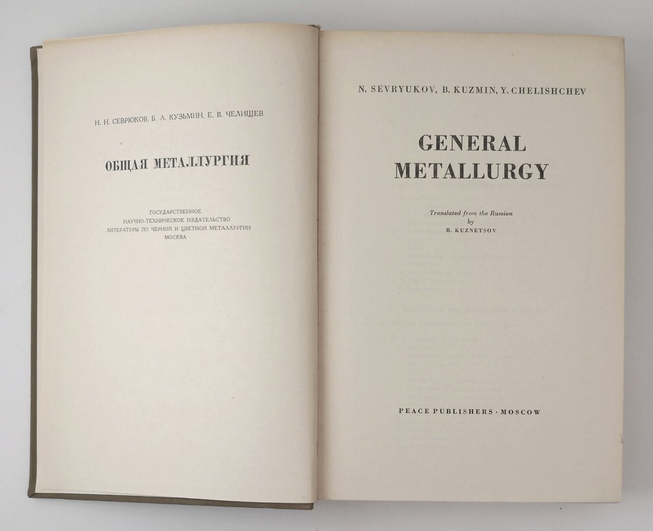 GENERAL METALLURGY di N.Sevryukov, B. Kuzmin, Y. Chelishchev.