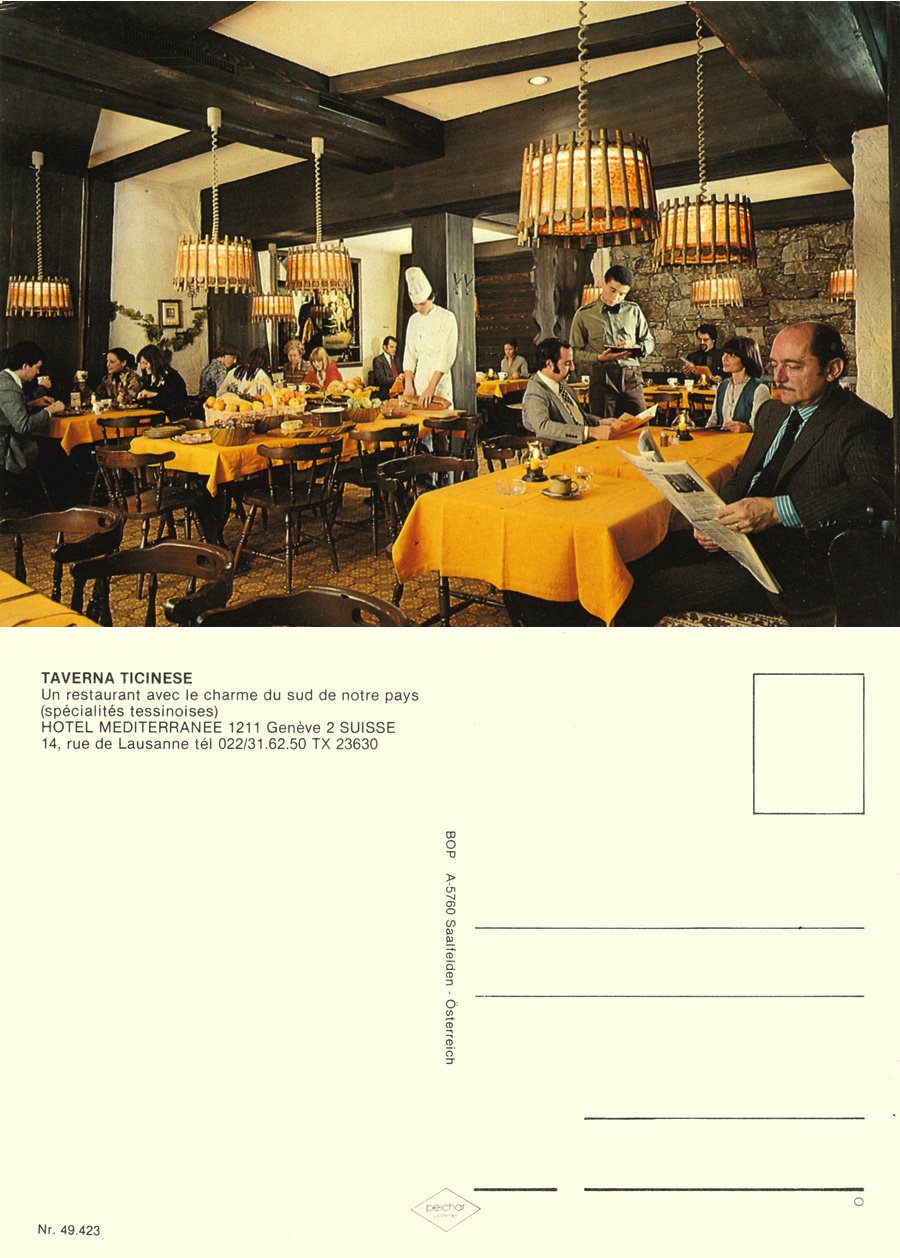 Geneve. Taverna Ticinese, Hotel mediterranee. Non viaggiata