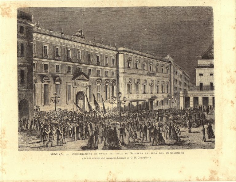 Genova. Dimostrazione in onore del duca di Galliera la sera del 26 novembre. Stampa 1876