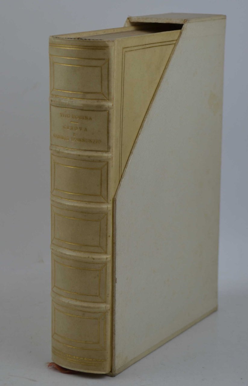Cm. 26, pp. pp. 217 + (5) con molte tavole fotografiche f.t. Bella e solida legatura edit. in piena pergamena, dorso a nervi con titoli e filetti in oro. Taglio di testa dorato. Entro custodia in cart. rigido. Perfetta conservazione. Tiratura di 550 esemplari numerati, il presente appartiene alla tiratura di testa di 50 esemplari non veniali con legatura di pregio e ad personam (esemplare destinato a Emanuele Gazzo). Bella edizione su carta velina a mano della cartiera di Maslianico.