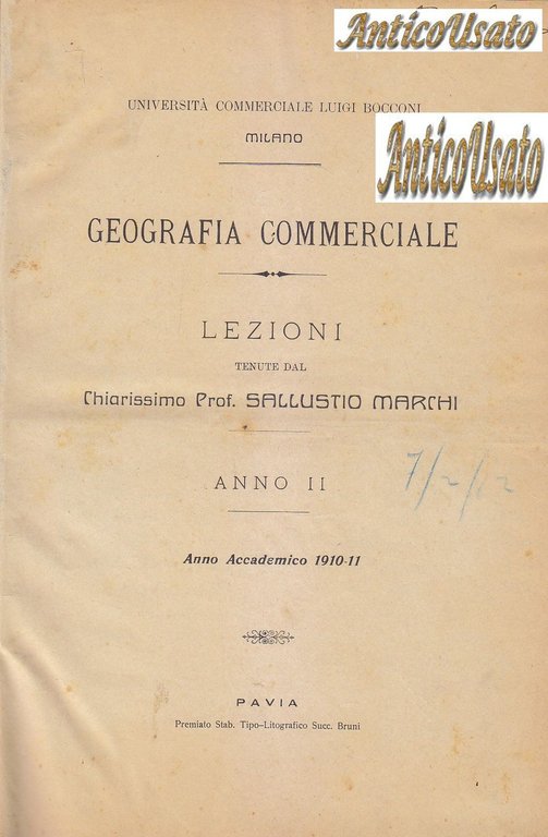 GEOGRAFIA COMMERCIALE LEZIONI Anno II Sallustio Marchi 1911 Bocconi Libro