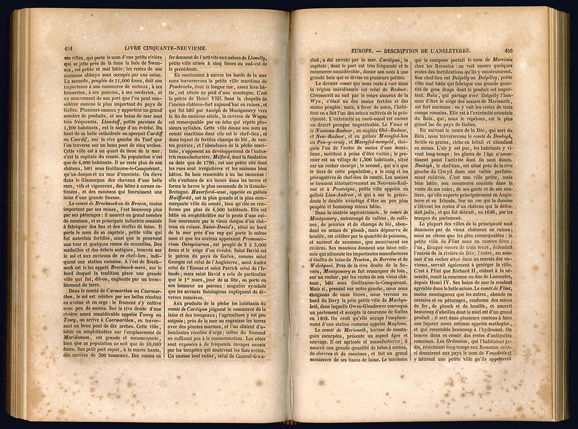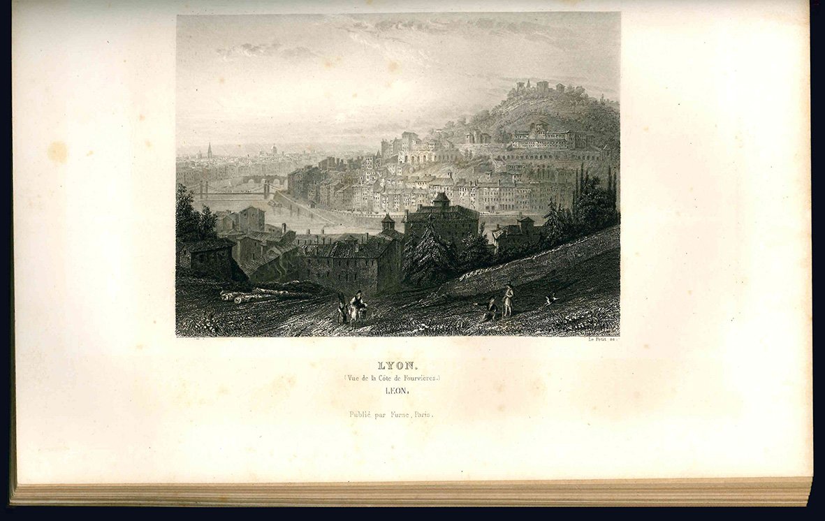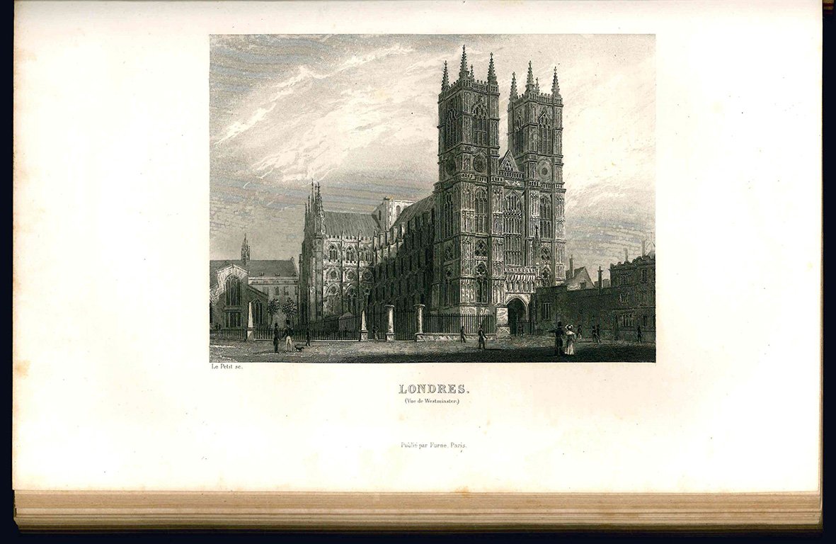 Con [21] finissime vedute in acciaio di Marsiglia, Nimes, Bordeaux, Lione, Strasburgo, Parigi (Arco di Trionfo), Parigi (Hotel-de-Ville), Rouen (Vista generale), Rouen (Cattedrale), Londra (Westminster), Londra (Saint-Paul), Edinburgo, Dublino, Stoccolma, Canton, Benares, Alessandria, Il Cairo, Algeri, New-York, Citta' del Messico. Fioriture e bruniture diffuse.