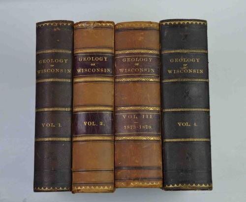 Quattro volumi di cm. 26, pp. 3.000 ca. complessive. Solida legatura coeva in mezza pelle (leggermente diversa nei volumi). Ben conservato. Con moltissime tavole e carte geografiche in litografia, in nero ed a colori ed un atlante di 27 tavole litografiche raffiguranti fossili alla fine dell'opera. L'opera è apparentemente completa anche se il volume 2 e 3 richiamano nel frontespizio un atlante che non ci è dato di sapere se è costituito dalle tavole inserite nei volumi. Opera dall'apparato iconografico veramente affascinante, soprattutto nelle tavole in litografia a colori di cascate, siti geologicamente interessanti, cave, ecc.