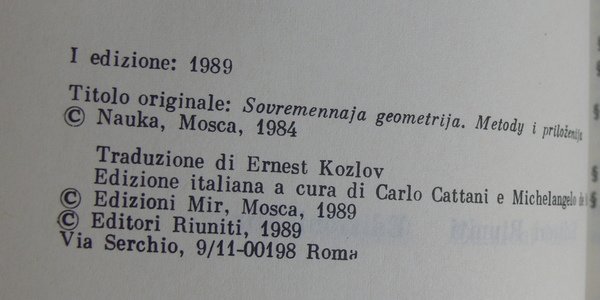 Titolo originale dell'opera: Sobremennaja geometrija: metody i prijiozenija