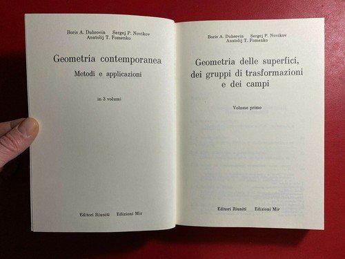 Appartiene all'opera in tre volumi "Geometria contemporanea. Metodi e applicazioni" di cui è il primo volume. Presenta ingiallimenti nelle prime ed ultime quattro pagine ed alcuno segni in ultima di copertina, per il resto ottime condizioni.