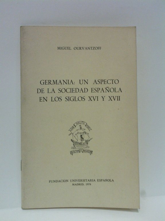 GERMANIA: Un aspecto de la sociedad española en los siglos XVI y XVII. (Conferencia pronunciada en la Fundación Universitaria Española el día 29 de Octubre de 1975)